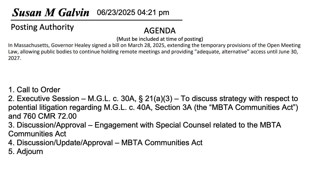 Town would not follow his legal advice on the MBTA Communities law.